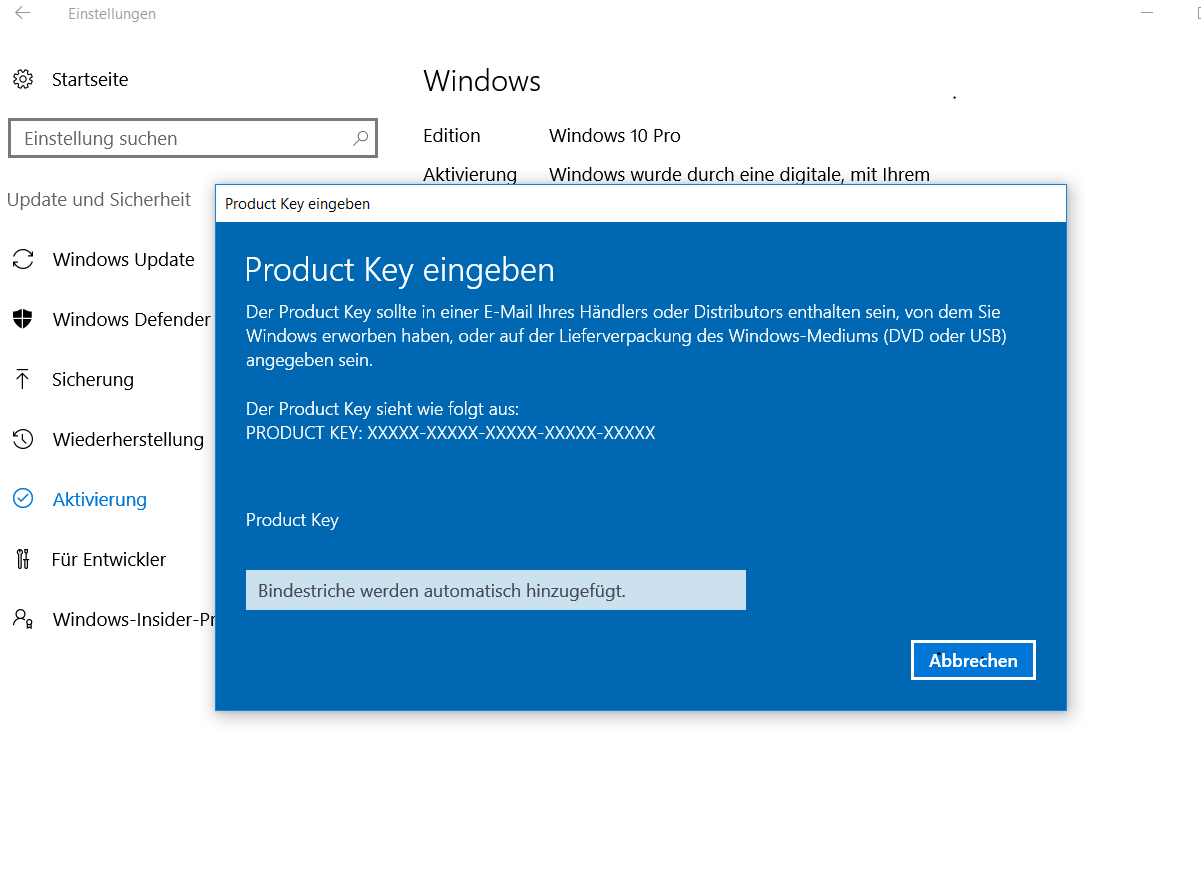 Nachdem ich von Win 7 (home prof.) auf mittlerweile Version 1607 (14393. 1593) "aktualisiert" habe, würde ich einfach meinen Win7-Key auf den DVD-Cover abschreiben und eingeben, richtig?