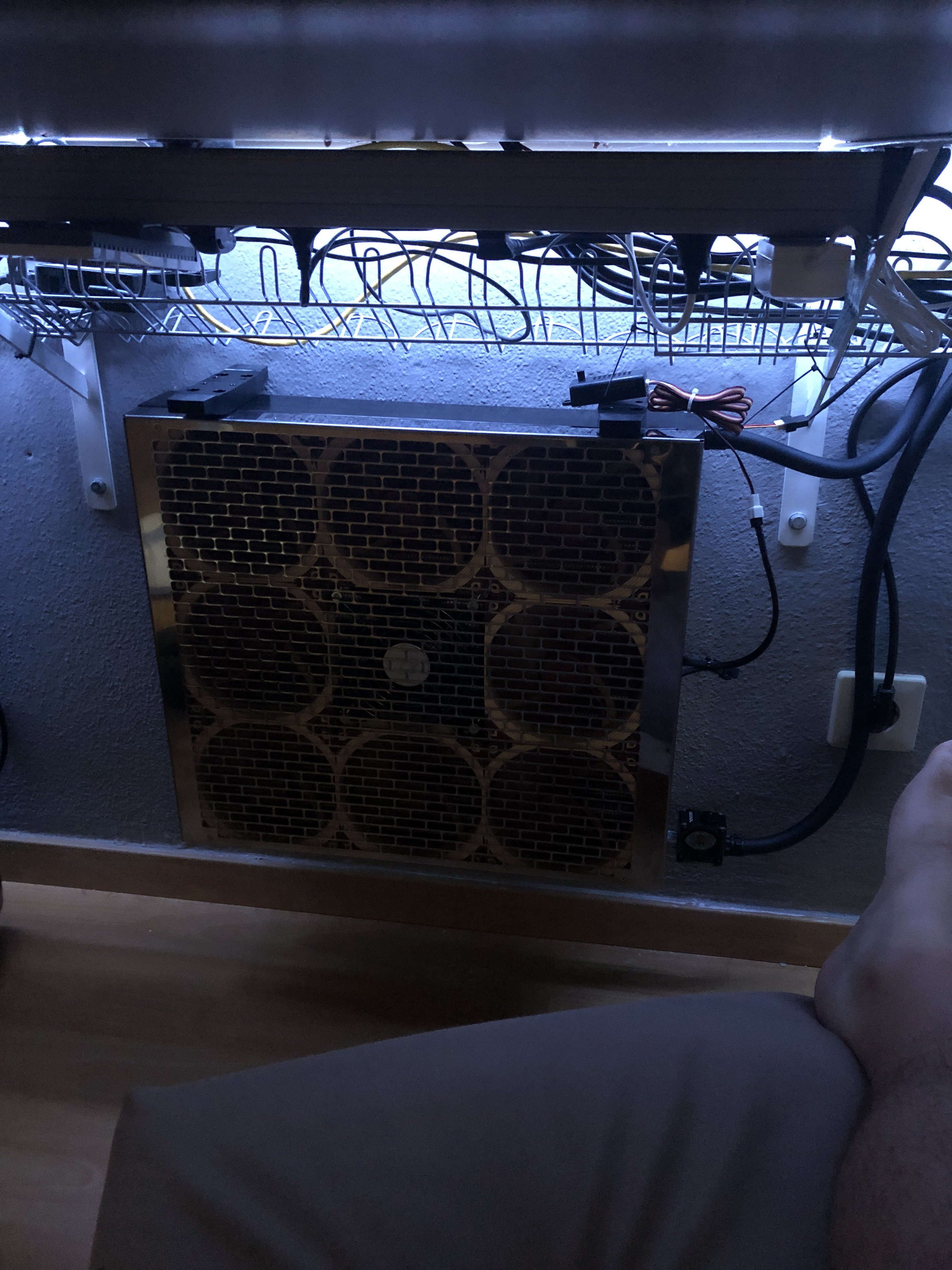 Der Radiator am Gehüsedeckel soll die Luft herausblasen, der in der Front soll sich frische Luft hereinziehen. Oder wäre es sinnvoll den 120 mm Gehäuselüfter an der Rückwand dran zulassen und dann eher 1x240er und 1x360er Radiatoren zu montieren oder weg damit und 2x360er Radiatoren.