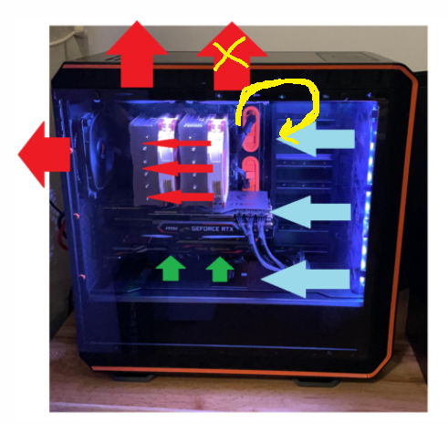 Wenn beide Lüfter aus sind, sollte die CPU-Temperatur steigen. Wenn nur der obere hinterere Lüfter an ist, denke ich, dass die CPU-Temp. in etwa wieder die angesprochenen 80° erreicht.Joker87 schrieb:@dermarv6 ich mag zumindest die Theorie und probiere es mal aus, sollte auch einen Effekt haben wenn ich die beiden oberen komplett ausmachen ja?
