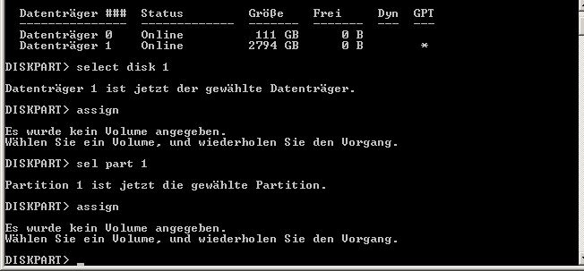 Und versuche bitte mal mit sel disk (nummer)