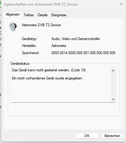 Umstieg von Win10 auf Win11 DVB-C USB Treiber funktioniert nicht mehr