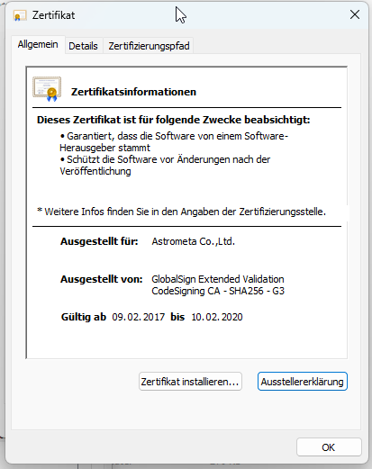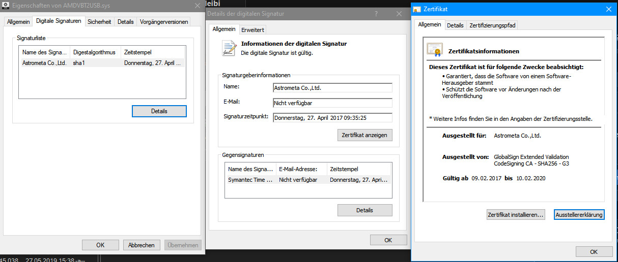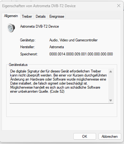 Ich hab mir den Treiber von Astrometa mal runtergeladen und wenn ich in den Eigenschaften der AMDVBT2USB.sys reinschaue, dann ist der digital signiert.