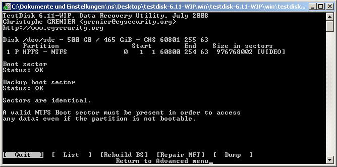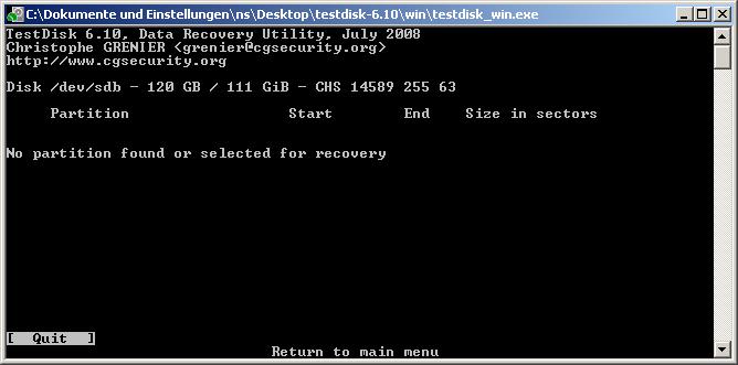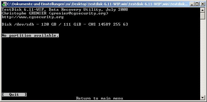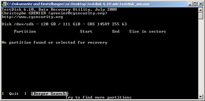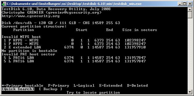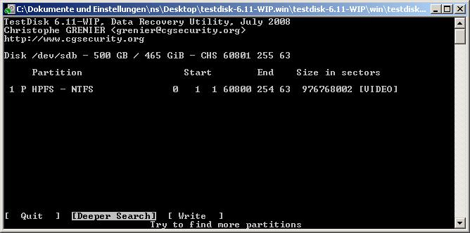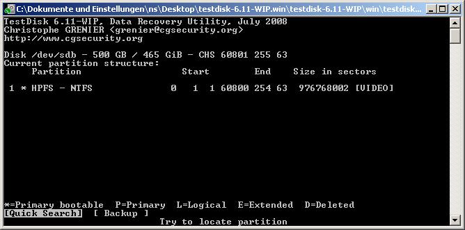 Hab heute beim Neu-Aufsetzen meines Computers meine Festplatten verwechselt und unabsichtlich die Partition meiner externen Festplatte gelöscht und zwei neu darauf erstellt, sie jedoch nicht formatiert. Bin grad dabei Testdisk 6.10 drüberlaufen zu lassen, aber es scheint als würde er meine alte Partition nicht finden.