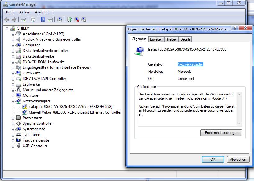 Im Gerätemanager bei den Netzwerkadaptern tümmelt sich aber ein mir unbekanntes Stück Hardware rum.