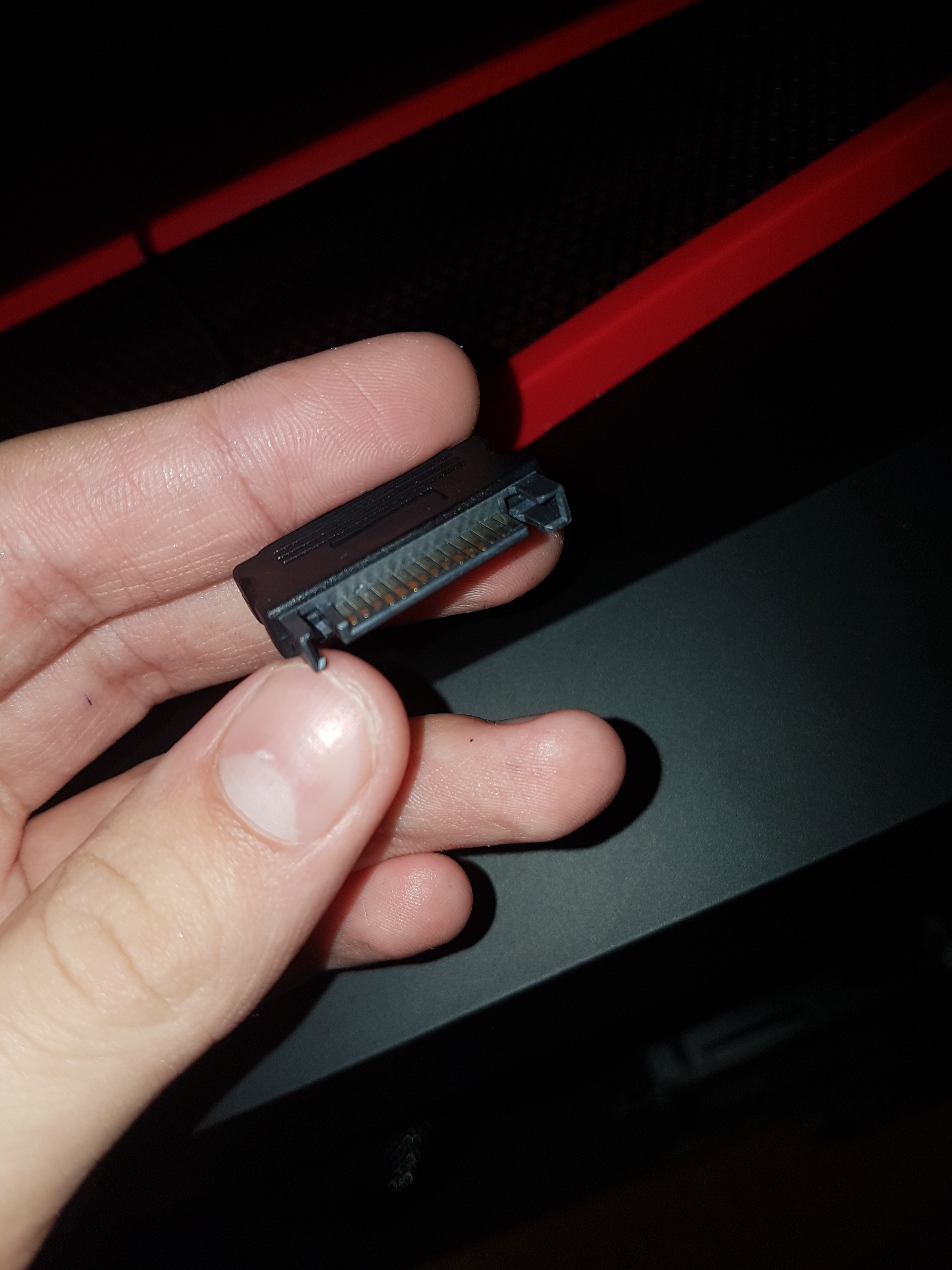 Sieht aus wie ein Anschluss für eine SSD, bin mir aber äusserst unsicher.