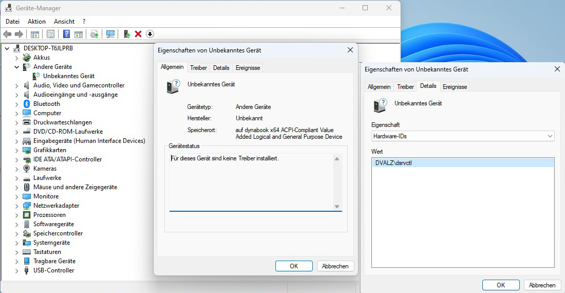 Alter Laptop bekam Win11, alles wurde sauber erkannt und funktioniert, aber ein Eintrag in den Systemgeräten (dynabook System Driver) blockiert die Bedienung einiger F-Tasten (mute/heller/dunkler + paar andere). Habe etliche Versionen von dem Treiber ausprobiert, keine funktionierte. Wird der Eintrag im Gerätemanager nur deaktiviert, ist er seltsamerweise beim nächsten Reboot wieder aktiv (und die F-Tasten gehen wieder nicht). Deaktiviere ich den Eintrag und entferne den Treiber, klappt es hingegen. Einschränkungen habe ich bis jetzt keine bemerkt. Dafür ist das Gerät jetzt "unbekannt". Und das stört etwas.