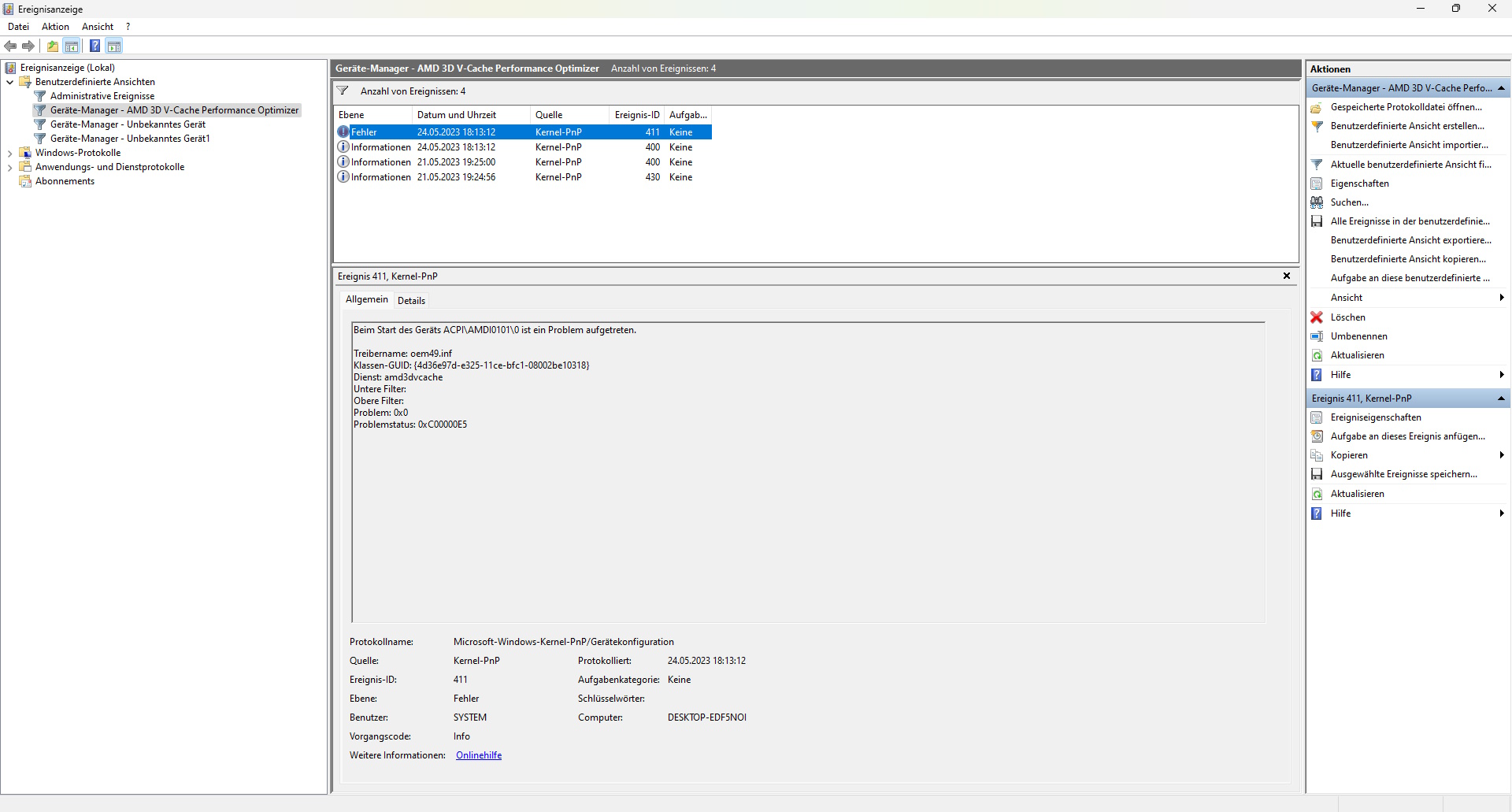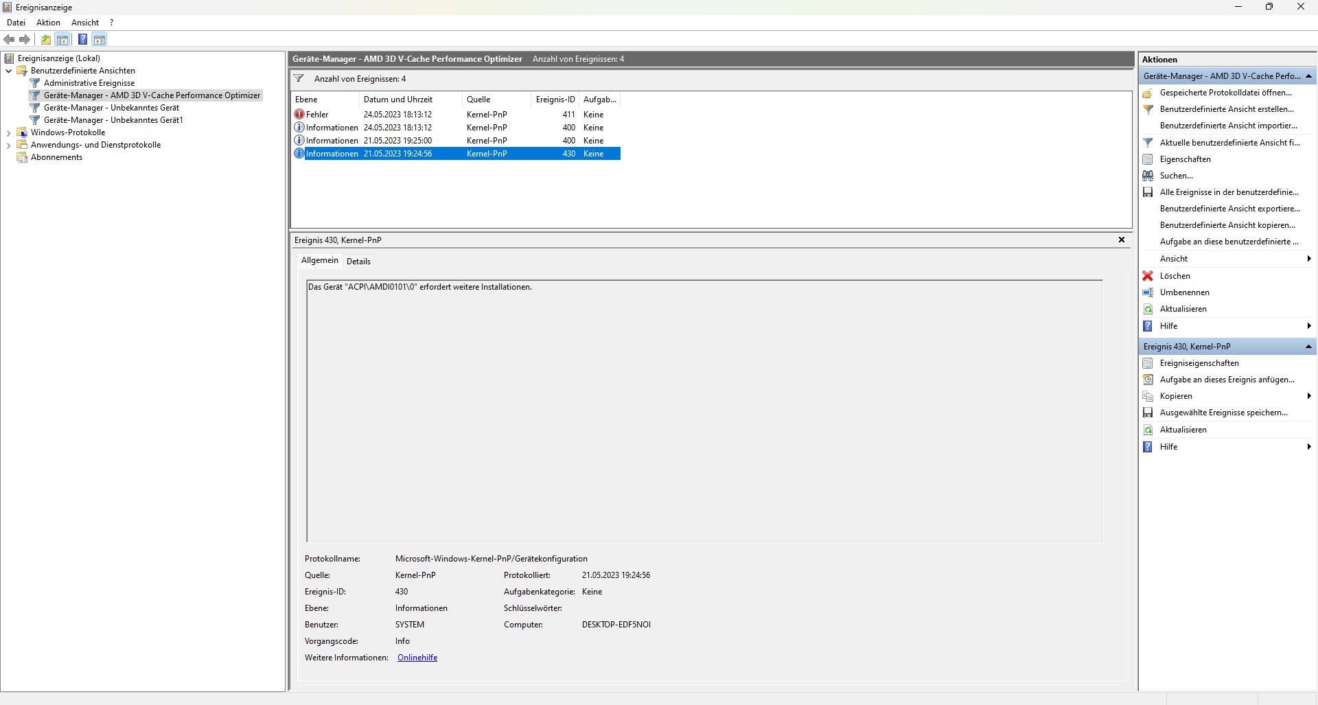 Das Gerät "ACPI\AMDI0101\0" erfordert weitere Installationen.