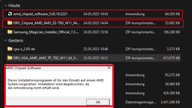 Das gleiche ist mir mit dem Treiber von Asus passiert (DRV_VGA_AMD_AM5_TP_TSD_W11_64_V310140403_20230329R), welcher auf der Seite (Link oben) zu Downloaden ist. Ich vermute mal, dass es sich bei beiden um den gleichen Treiber handeln wird.