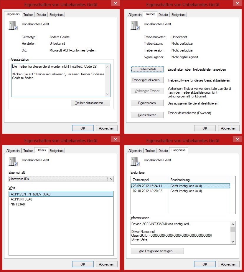 Ich habe mit Win8x64 nun ein Gerät ohne Treiber bei dem ich nicht weiß welches Gerät das sein soll.
