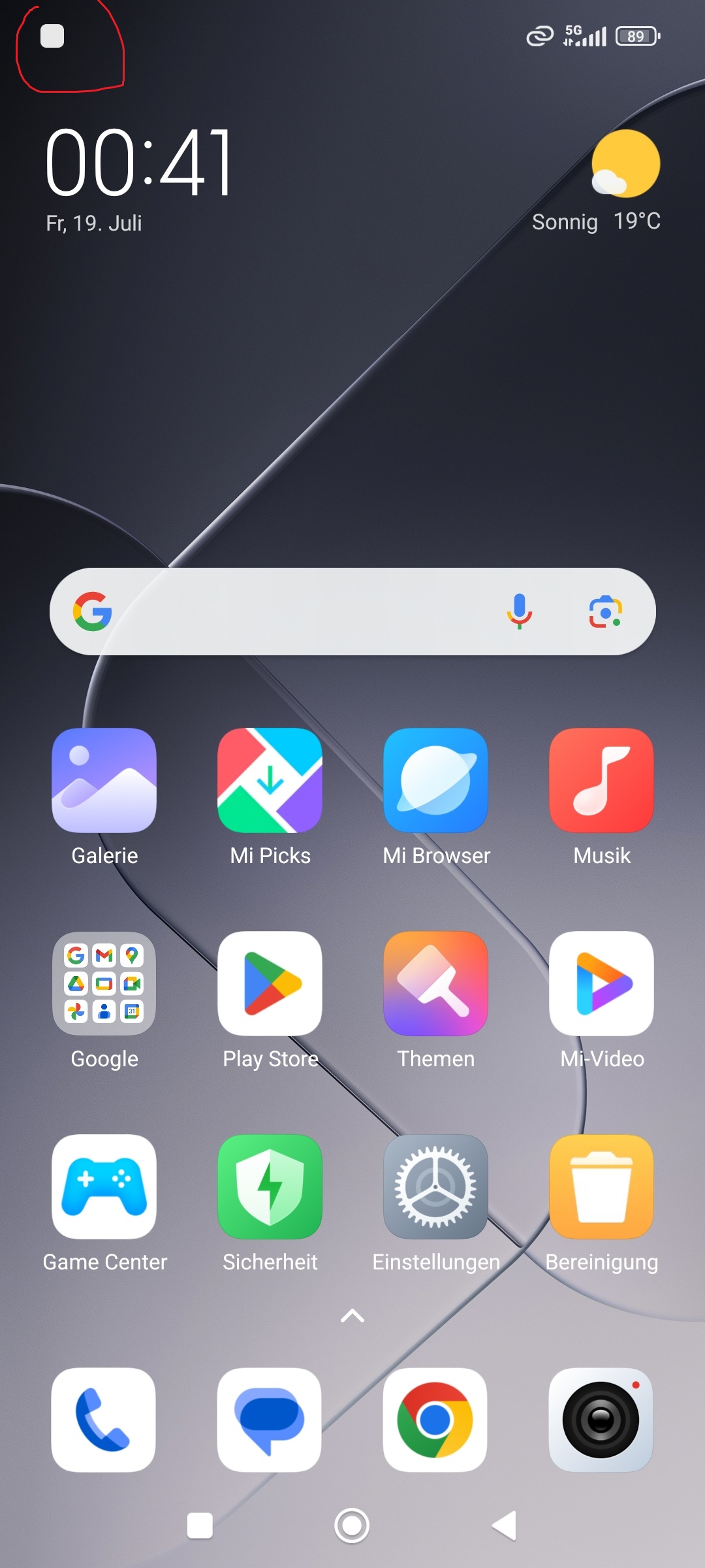 seit heute habe ich in der Statusleiste oben links ein weißes Rechteck.