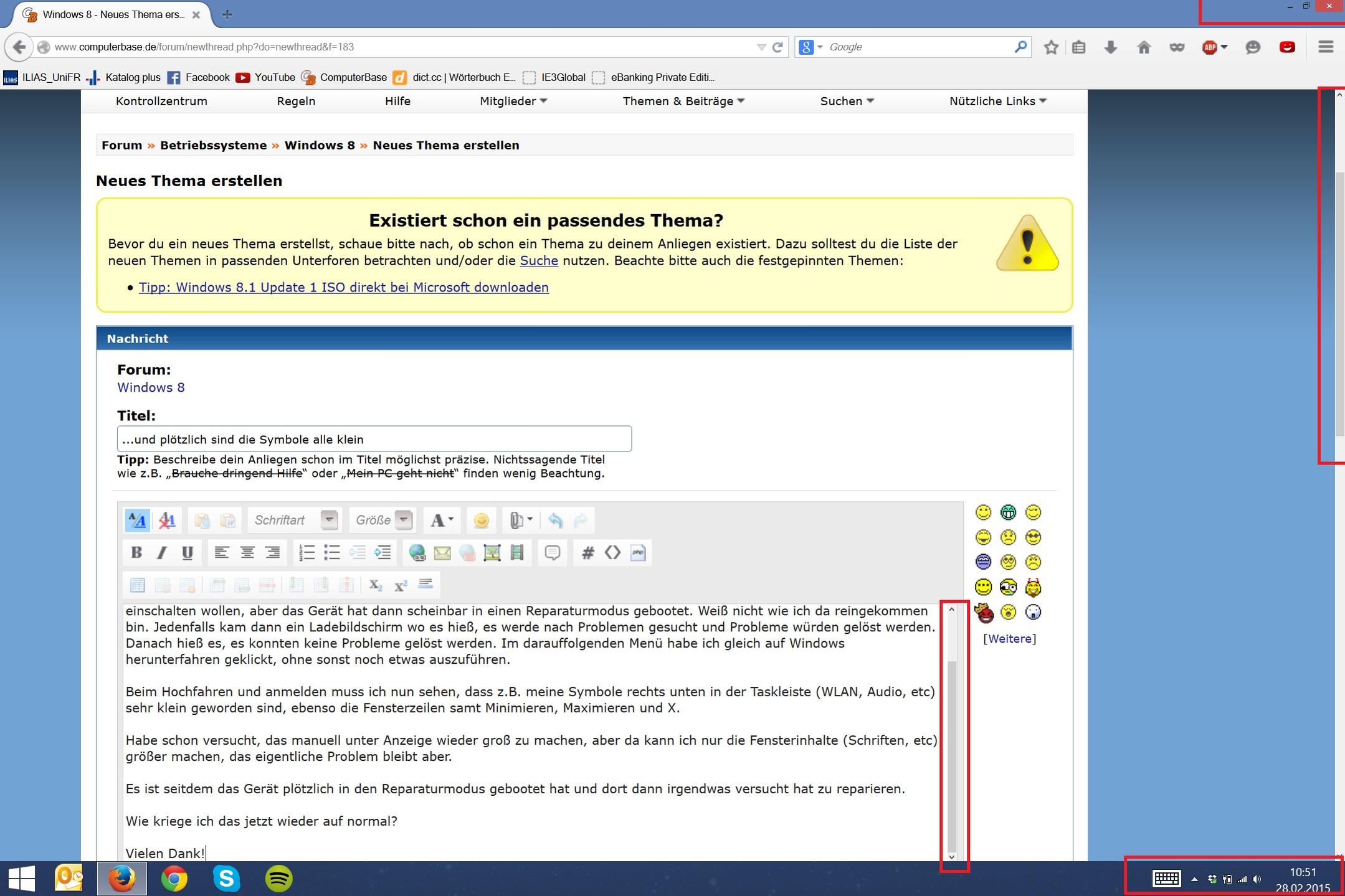 Beim Hochfahren und anmelden muss ich nun sehen, dass z.B. meine Symbole rechts unten in der Taskleiste (WLAN, Audio, etc) sehr klein geworden sind, ebenso die Fensterzeilen samt Minimieren, Maximieren und X.