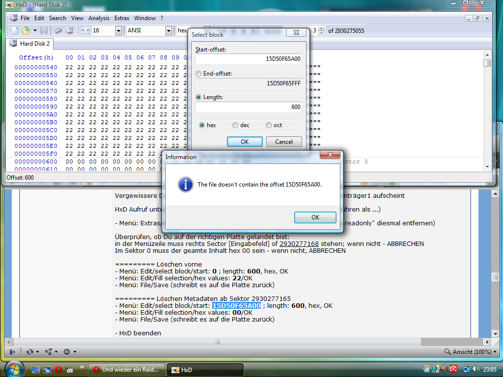 in der Menüzeile muss rechts Sector [Eingabefeld] of 2930277168 stehen; wenn nicht - ABBRECHEN