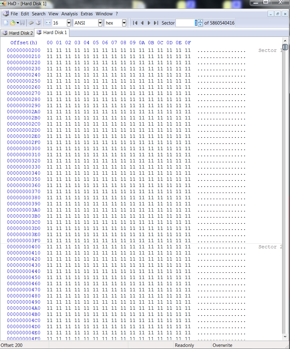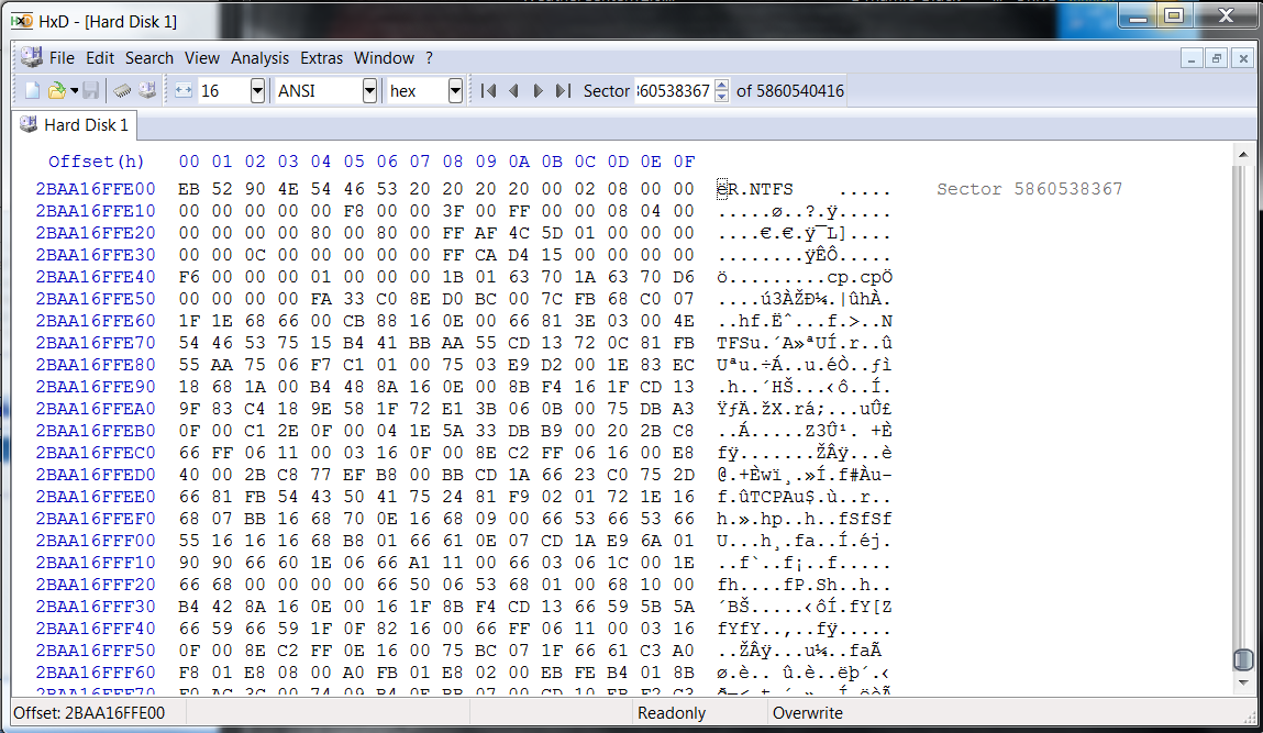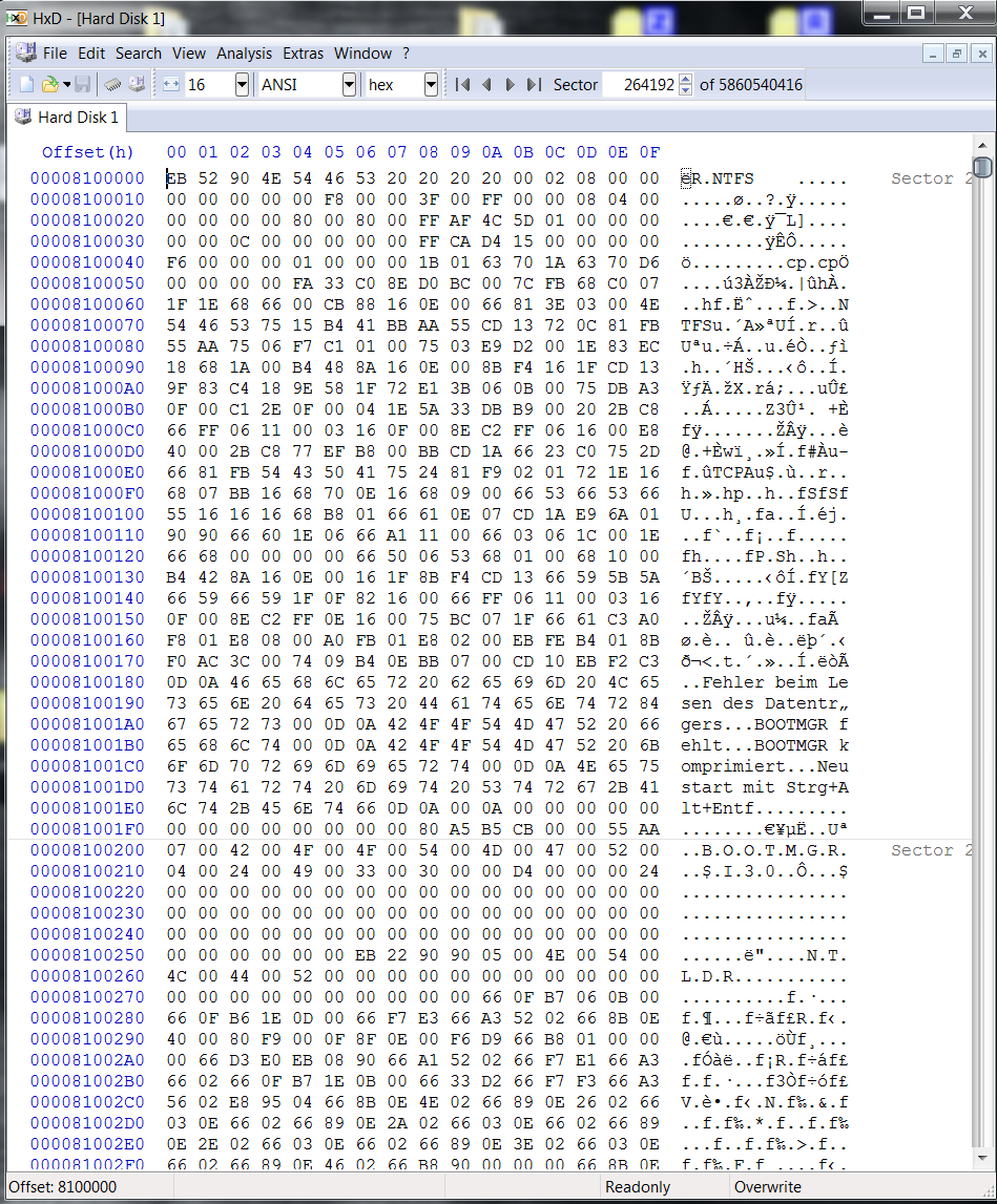 Öffne HxD, und gib im Sektorfeld folgende Nummern ein: (und drücke danach die Eingabetaste