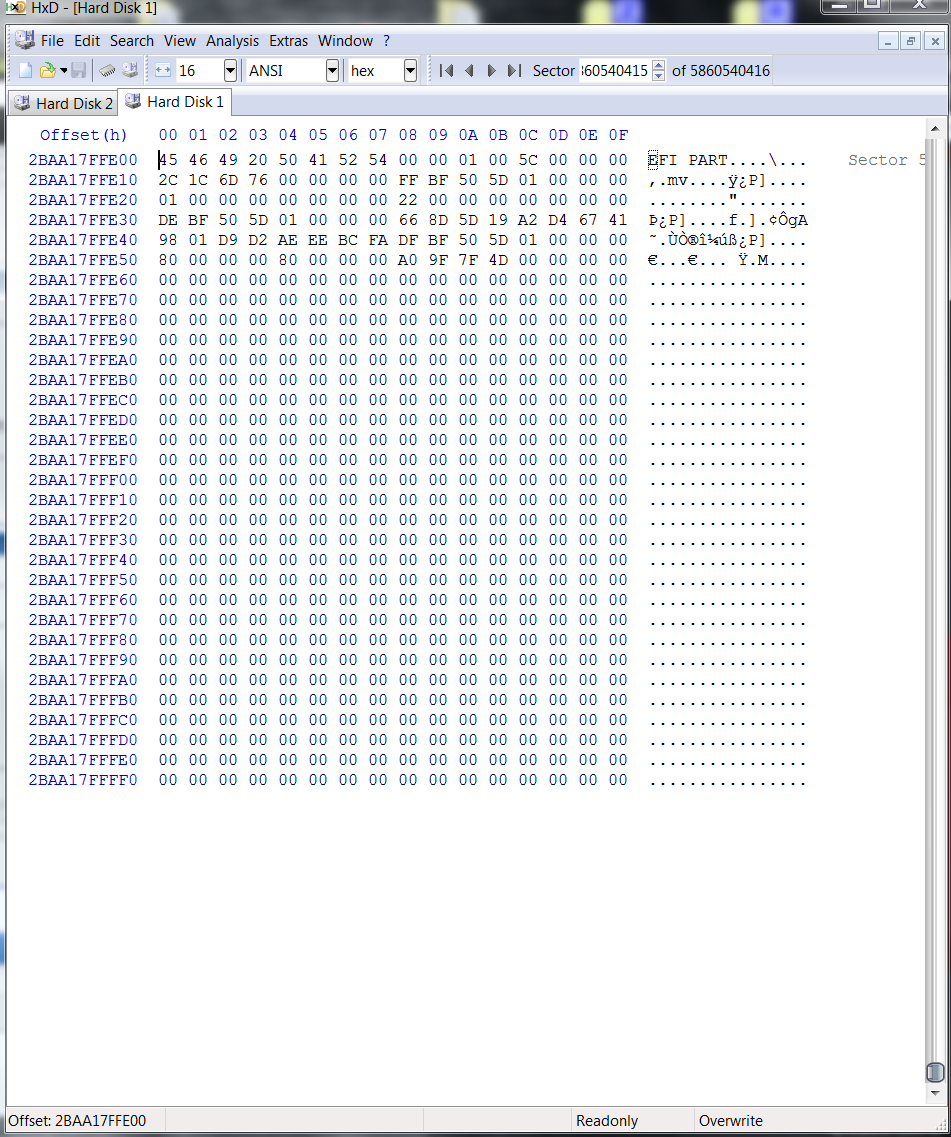 >! Taste drücken - am Beginn des letzten Sektors 5860540415 steht in der Characterübersetzung rechts 'EFI PART....\...'
