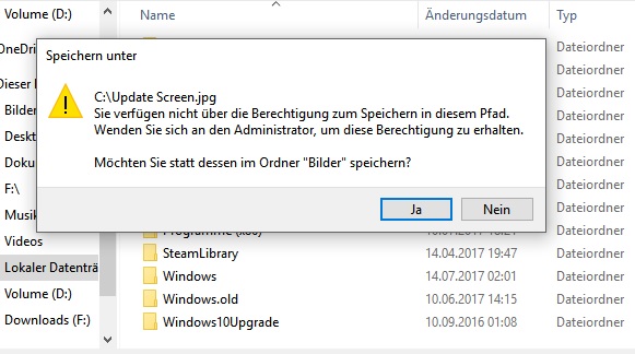 Beim speichern des Screens hab ich auf C: kein Zugriff bekommen. Bitte wenden Sie sich an den Admin. Ich bin doch Admin