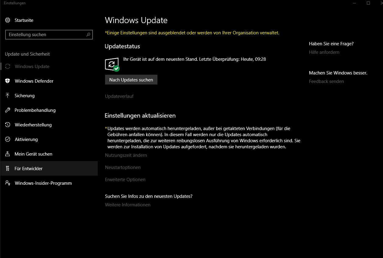 Bei Windows Update steht auch ( Einige Einstellungen sind ausgeblendet oder werden von ihrer Organisation verwaltet )