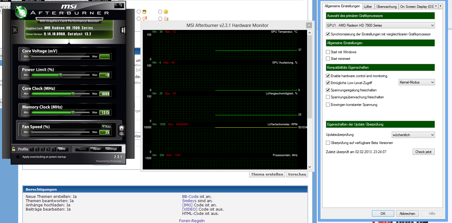 Aiaiai, ich muss meinen vorherigen Beitrag revidieren. Scheinbar ist auf der 7970 GHz Edition-Karte tatsächlich die Spannungsregelung blockiert. Der Afterburner bietet es nicht an und OC Guru-Einstellungen werden nicht übernommen. Habe selbst nur die 7970 ohne GHz und hätte so einen Unterschied nicht erwartet, weil die Chips ja gleich sind und nur anders heißen.