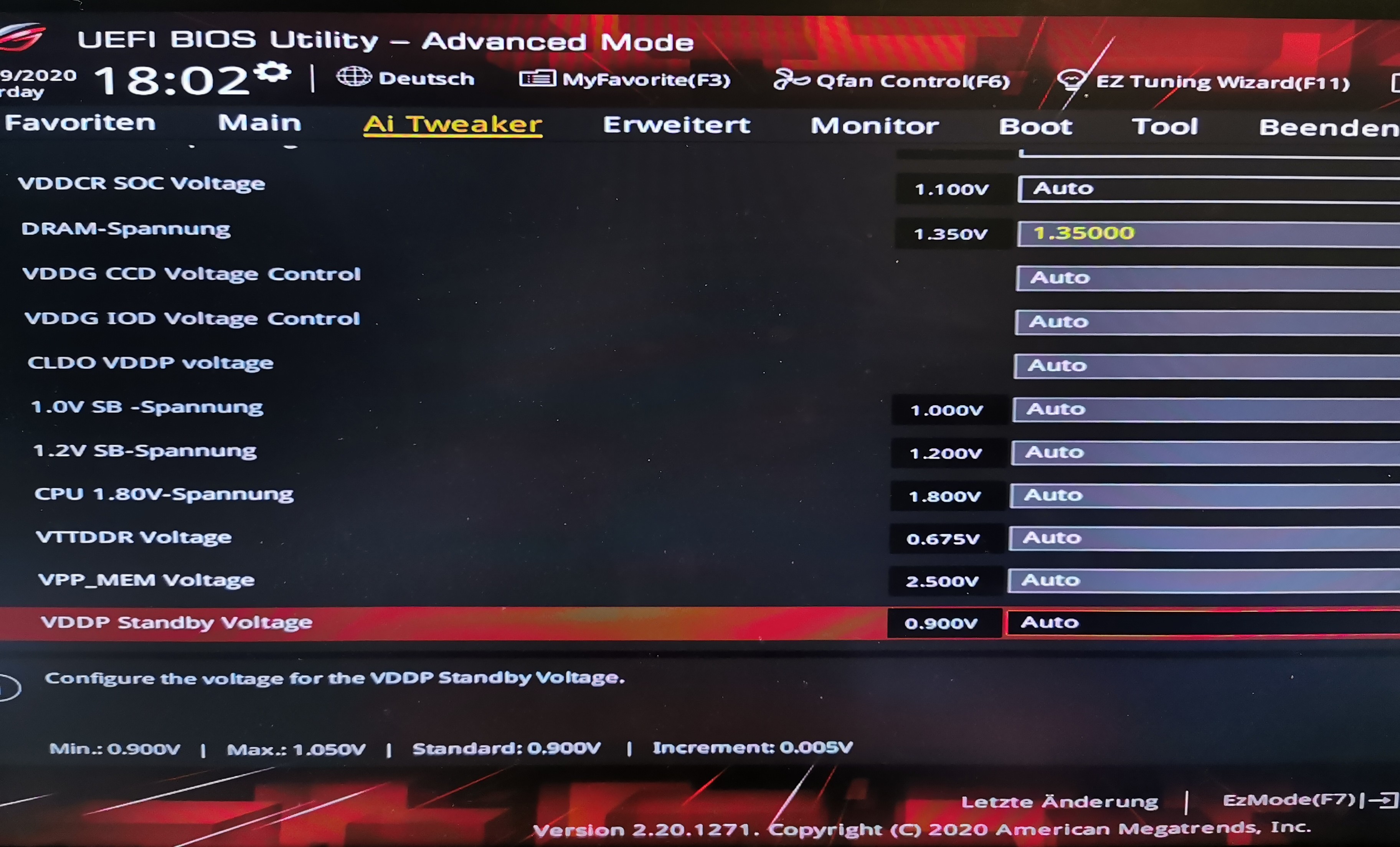 Genau, falls man Soundstörungen hat, könnte ein absenken der VDDG Spannung helfen, insbesondere wenn man beim RAM OC nicht höher als 3600 geht. Am besten VSoC 1050mV, VDDG 950mV und VDDP 900mV versuchen, zusätzlich noch kurz mit LatencyMon nachprüfen ob alles ok ist.
