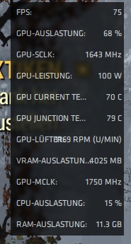 -2000Mhz @ 1,035v: lief in den 3 Szenarien in etwa 1-2 FPS langsamer, war aber schon wesentlich leiser und kühler, es dauerte auch länger, bis der Lüfter mal anlief, bin noch am entscheiden ob dies, oder folgendes mein Standard-Setting wird. Hotspot ging hier nach 30min auf ca. 92°C