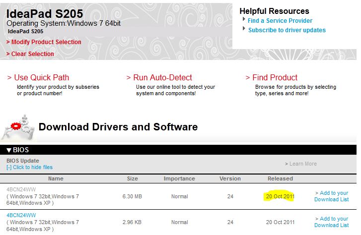 Ich sehe jedenfalls kein BIOS-Update für das S205 auf der Lenovo-Seite: