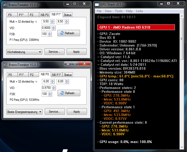 Undervolting des Zacate E-350 (Fusion) per Software