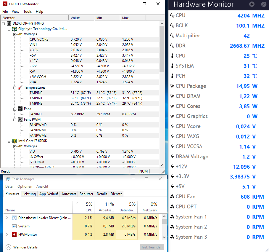 DVID auf -0.07 eingestellt. System läuft. Im idle minimale Spannung bei 0.036V, CPU taktet sich runter. ABER: bei Last 1.212 - 1.236V, also viel mehr als die CPU mitmachen sollte. Wie bebomme ich also die Last-Spannung weiter runter, ohne dass das System nicht mehr hochfährt???
