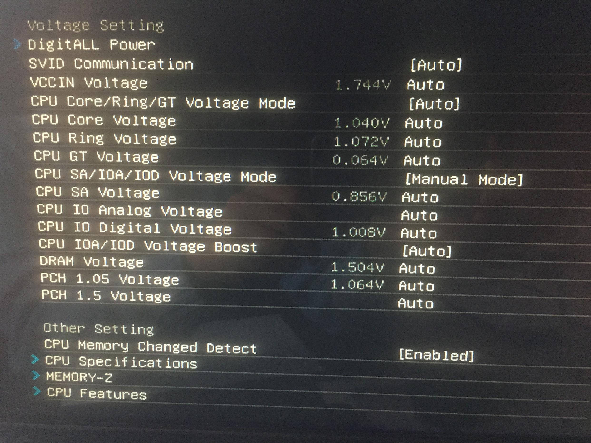Allerdings finde ich im BIOS lediglich die Möglichkeit die Voltage in riesigen %-Sprüngen zu erhöhen...falls ich überhaupt bei der richtigen Einstellung schaue (das BIOS auf dem Board verwirrt mich).