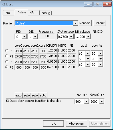 Irgendwie schafft es aber K10-stat nicht den P-state zu halten, irgendwas funkt manchmal dazwischen CnQ im Bios ist aber schon aus.