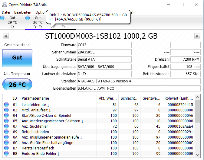 2. HDD: 500GB Western Digital (von 2008 kenn den Namen nicht)