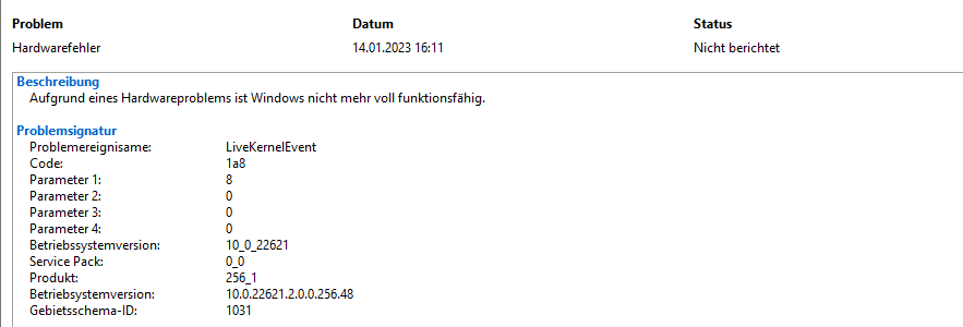 Da sind zwei Hardwarefehler (3+1), da kann man raufklicken, dann kriegst Du ne detailierte Ansicht. Und die waren gestern (14.01.)