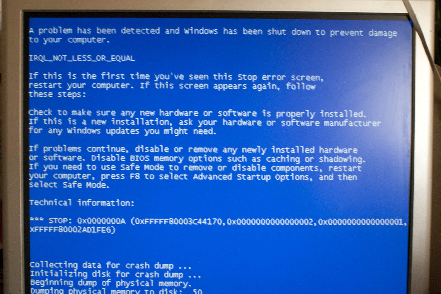 Hab daraufhin komplett neuen RAM geordert, der kam auch an, schön eingebaut, alles schien zu laufen. Hatte nun 6 GB RAM drin, dann kam der erste Bluescreen. Dann war es wie damals mit dem anderen RAM, alles ist vor sich hin gecrasht, Bluescreens usw..