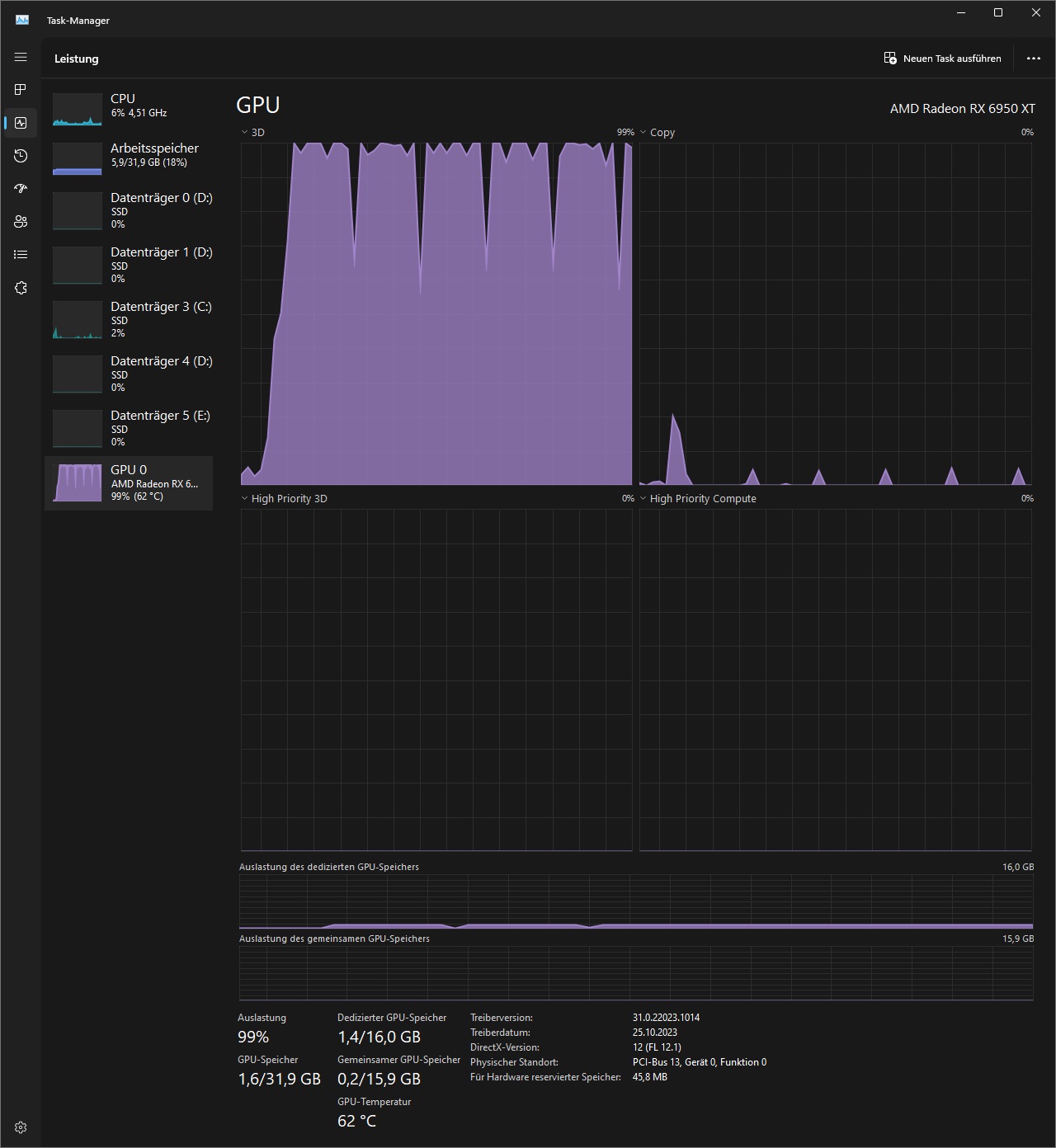 Dedizierter GPU-Speicher 1,3/16,0 GB