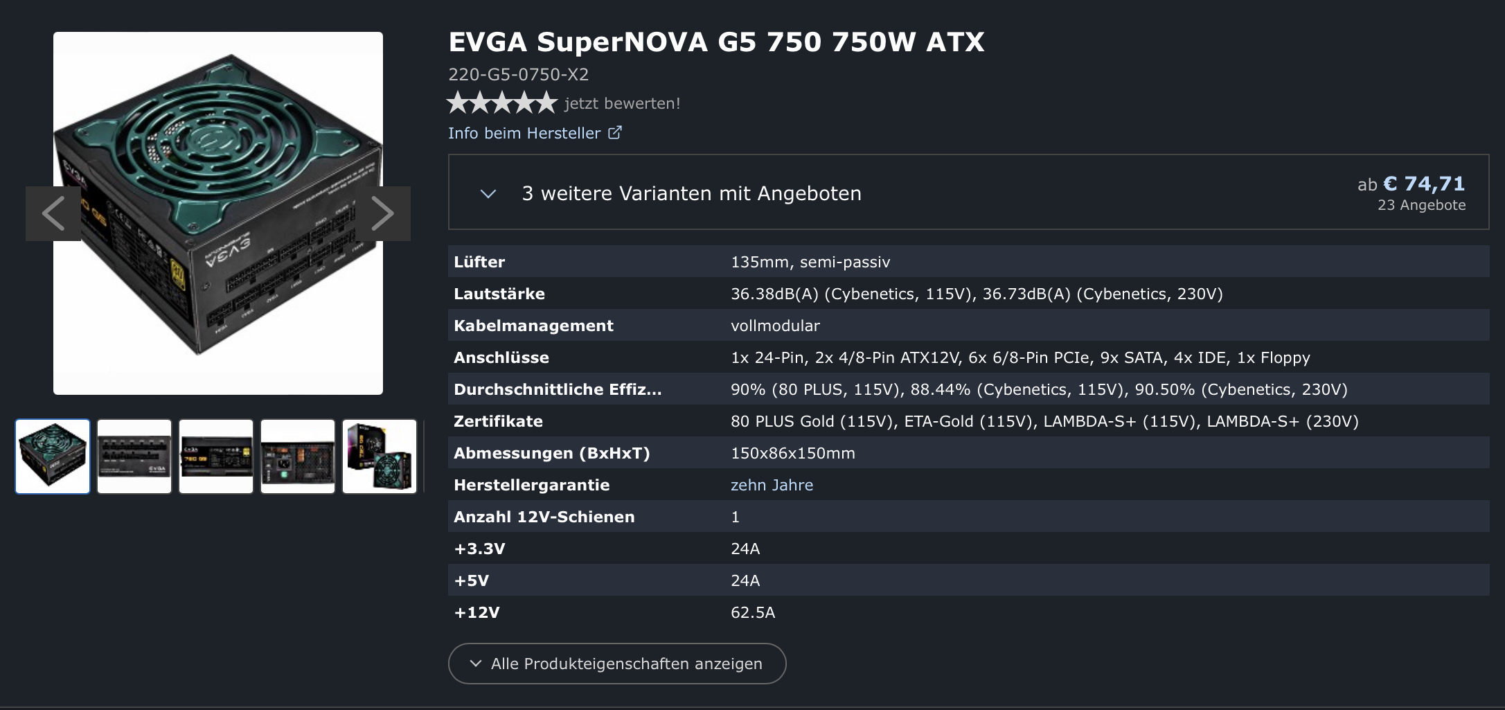 Netzteil: EVGA SuperNOVA G3 750 750W ATX