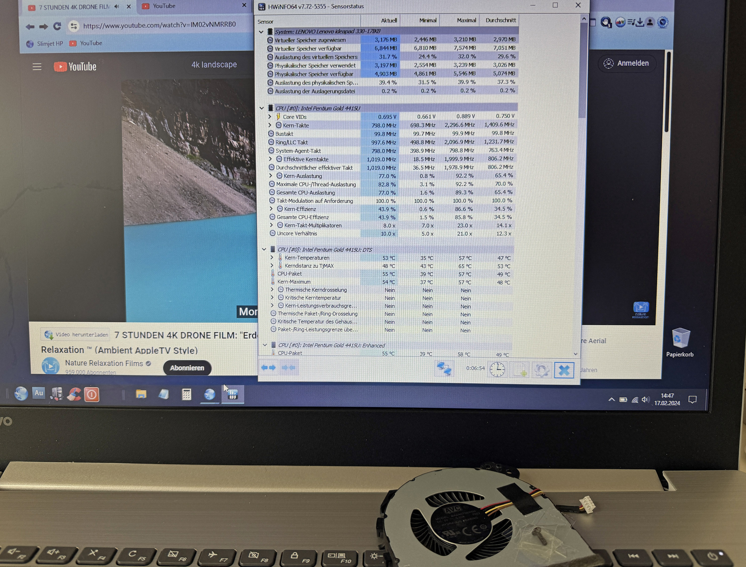 Ich habe einige Stunden Belastungstests gemacht... diverse youtube videos 4k, mehrere Browsertabs, multitasking