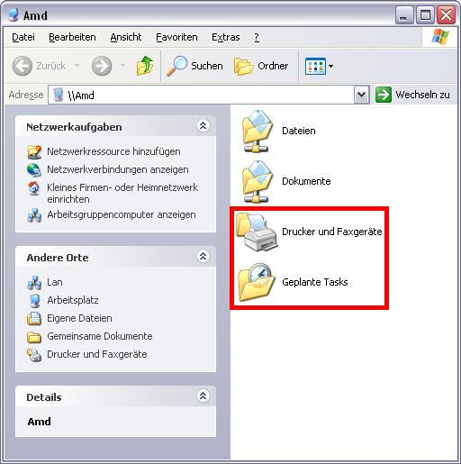 Ich habe unter Windows XP immer einige unerwünschte Dateifreigaben, nämlich "Drucker und Faxgeräte" und "Geplante Tasks". Die möcht' ich da einfach nicht drin haben weil ich ein kleiner Ordnungsfanatiker bin.
