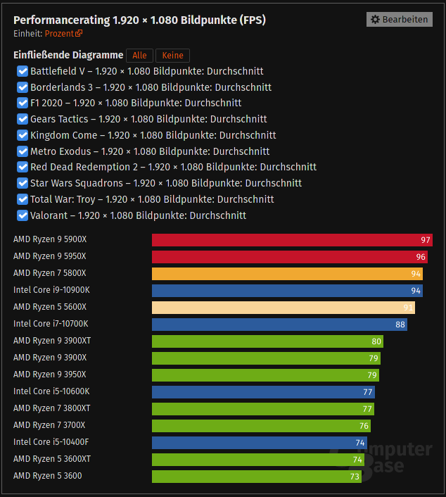 Unabhängig davon sind 7/10 Spiele immerhin 70% wo Intel schneller ist. Ist das so schwer zu akzeptieren ?