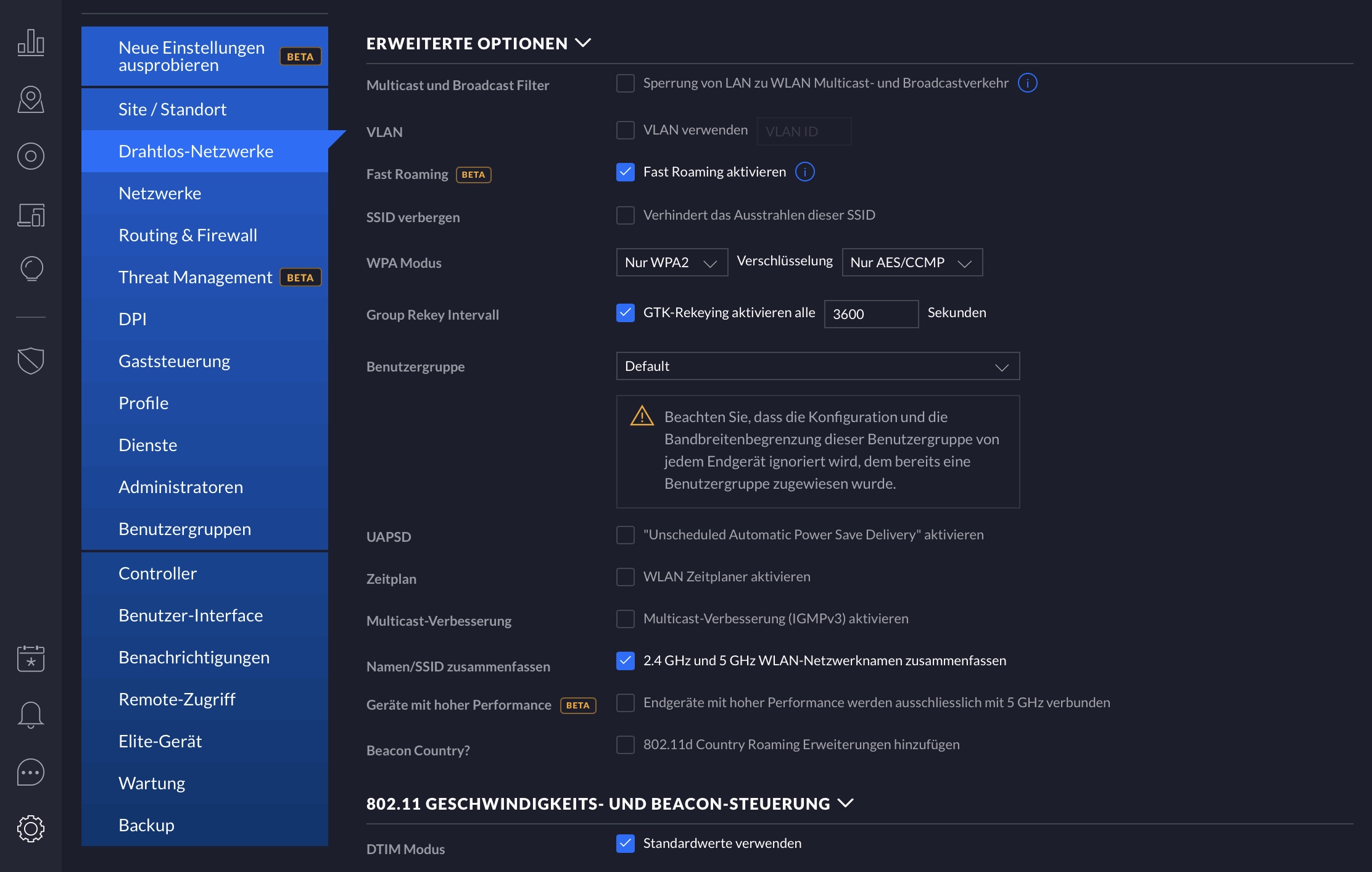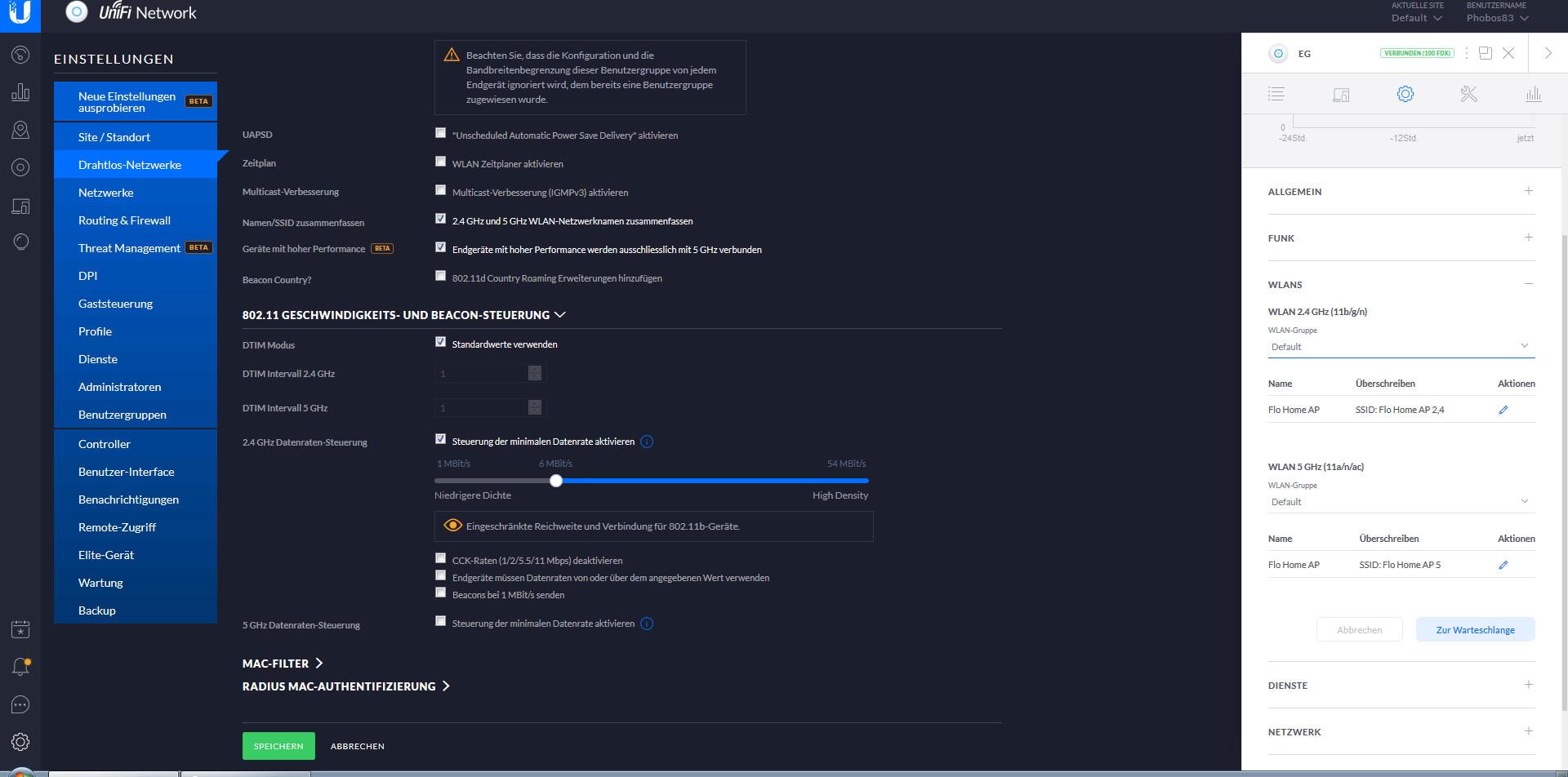 Zum Hauptproblem: Mir ist nach wie vor nicht klar wie ich das 2,4 und 5 GHz WLan zu einer SSID zusammengefasst bekomme? Bin davon ausgegangen, dass ich beiden z. B. die SSID "Flo Home AP" geben kann, und das Gerät (z. B. Smartphone) sich dann die "beste" Variante herauspickt?