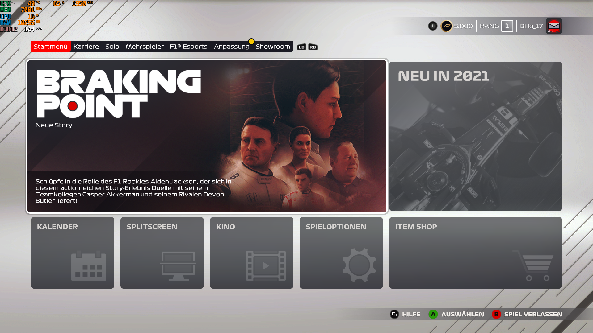 Mach mal Screenshot mit F1 2020 oder F1 2021 und allen relevanten Daten im Afterburner Overlay neben FPS eventuell auch die Frametimes. Also irgendwie passt hier etwas nicht und kann auch ohne weitere Informationen nicht wirklich eingegrenzt werden. Interessant könnte auch die Werte der SSDs sein ob, hier etwas nicht stimmt zum Beispiel mit CrystalDiskInfo.