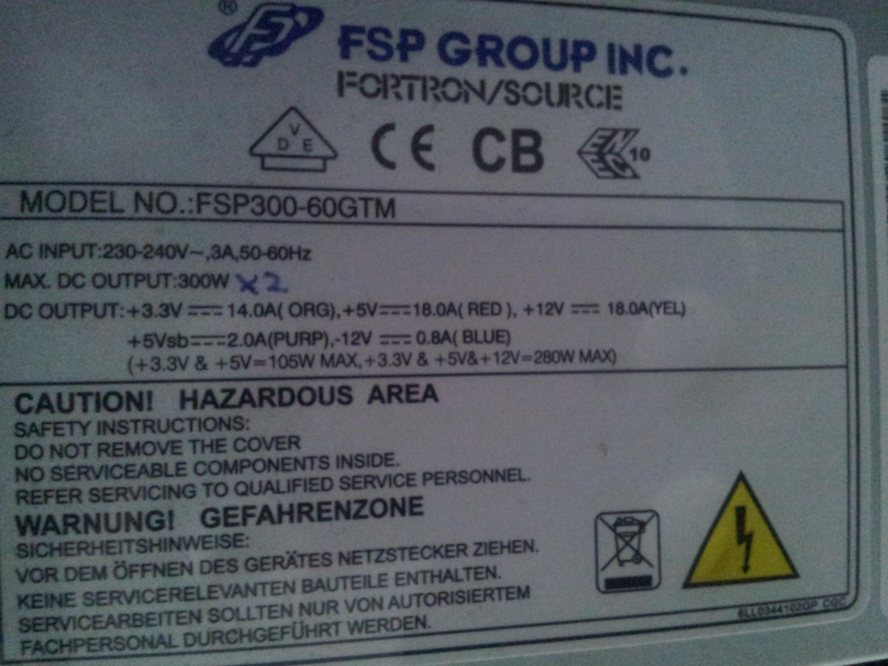 Hi! Ich habe heute mal wieder meinen PC aufgeschraubt und habe 2 lüfter eingebaut und 4 GB Ram eingebaut. So da hab ich mir mal gedacht wie viel Watt hat mein Netzteil eig. und was für ein Netzteil hab ich denn eigentlich. Ich habe eins von FSP. Genauer gesagt FSP300-60GTM. So aber weiter unten steht bei Watt das es nur 300 hat und ich dachte mir kacke nur so wenig