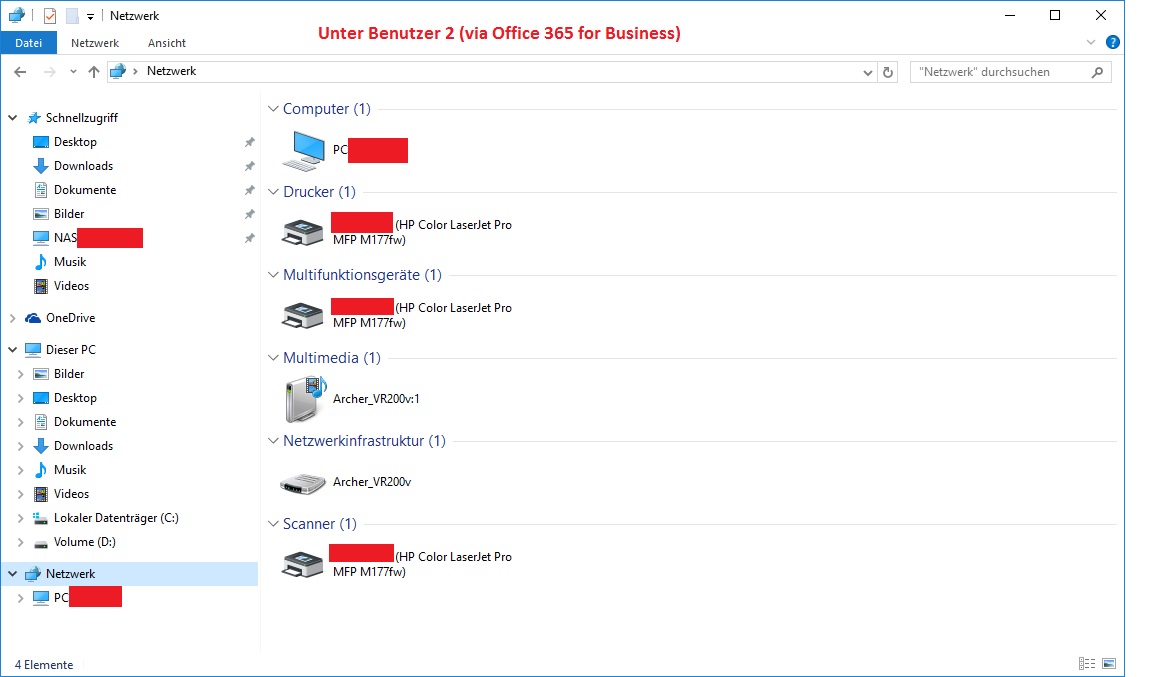 Mein QNAP-NAS und mein TP-Link Archer VR200v Router im lokalen Netzwerk lässt sich immer mit Benutzer 1 finden. Mit Benutzer 2 funktioniert dies nur sporadisch. Ich kann leider kein Schema erkennen, wann sich das NAS / der Router auch mit Benutzer 2 finden lässt, oder wann nicht.