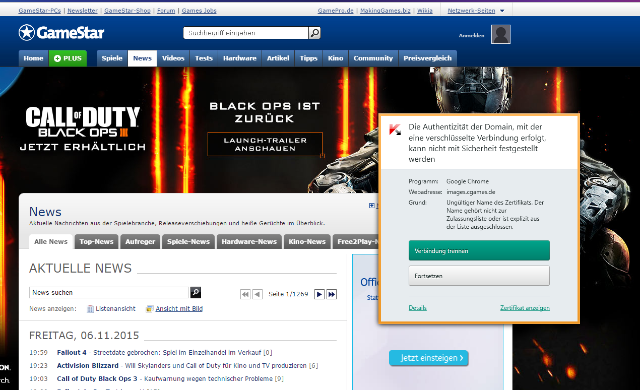 hab nen Problem mit Kaspersky Internet Security 2016. Wenn ich auf bestimmte Webseiten gehe wie bspw. hier