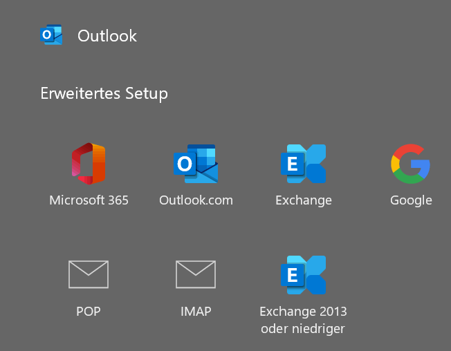 Hab jetzt keine Ahnung, was ich bei dem obigen Outlook-Fenster nun klicken muss. POP? IMAP? Irgendwas anderes? Wo gebe ich diese Infos vom Rechenzentrum in Outlook wo und wie ein?