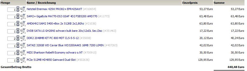 anhang: aktuelle und wohl letzte kombi für 441€ ist glaub ich alles dabei, sogar 4gb ram,hd 4850 und enermax