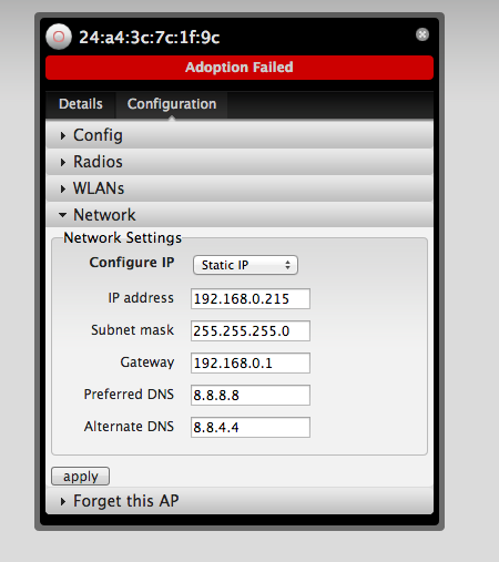 Ich habe ein Grosses Problem mein Unifi Wlan AP läst sich nicht Konfigurieren: