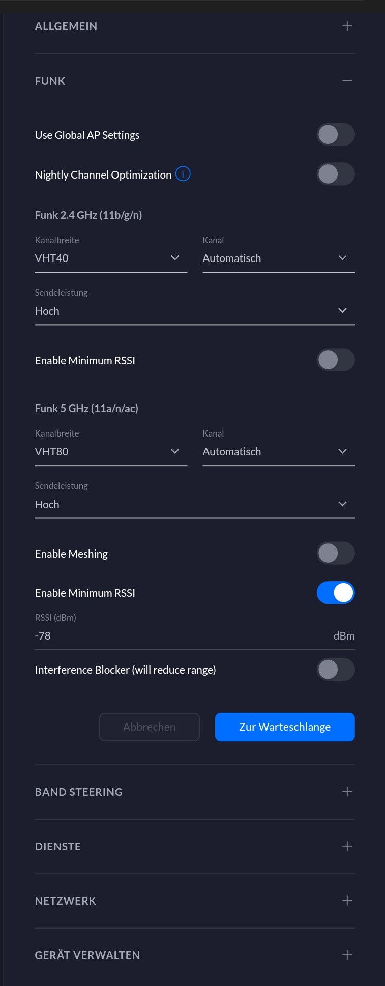 AP Einstellungen: