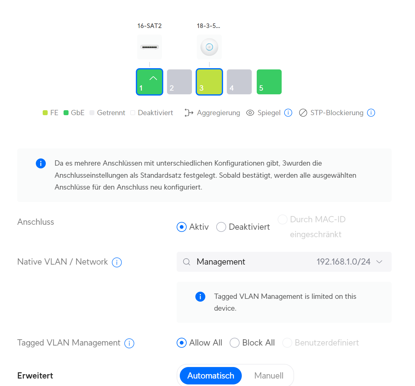 Im ersten Schritt hatte mehrere APs drangehängt,
