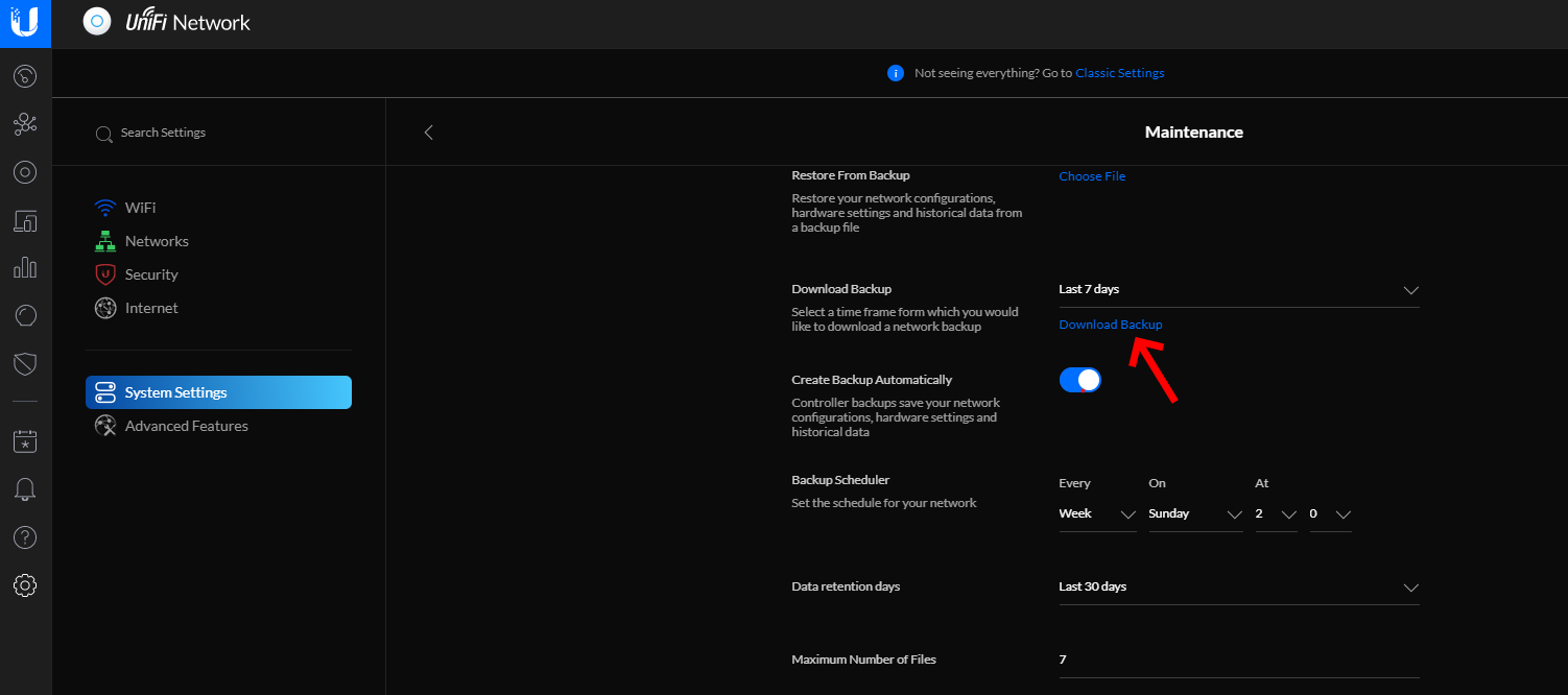 Ist es nicht Download Backup? Ne andere Option sehe ich in den alten Einstellungen auch nicht?