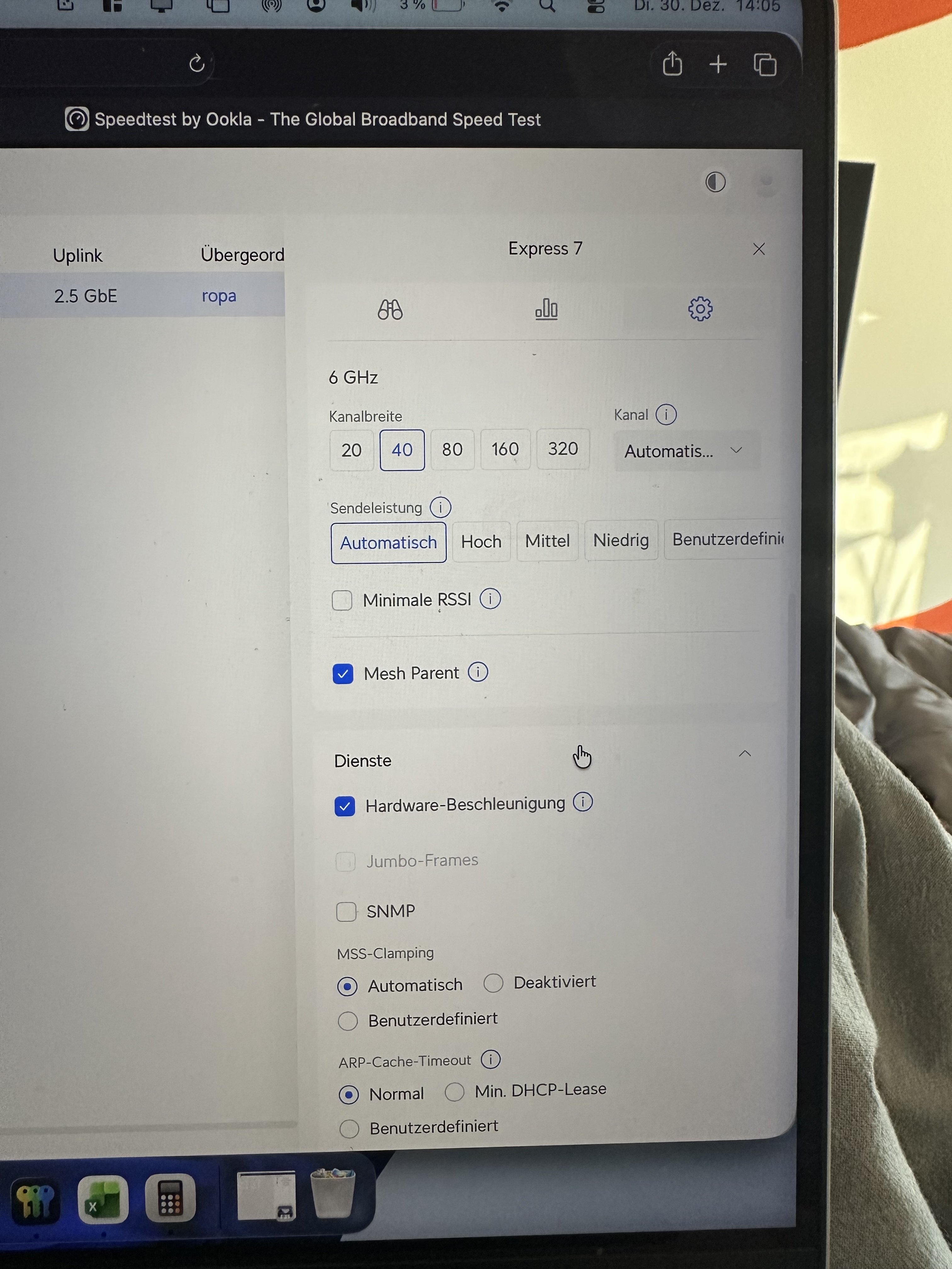 Neben dem Router kommen 130 Mbit Down und 80 Mbit Up an.