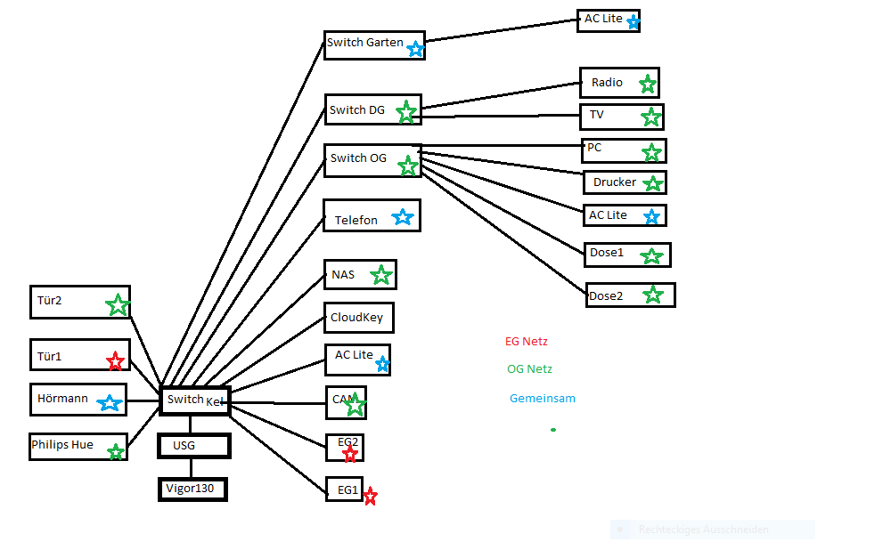 Drytek Vigor 130, Unifi USG, Cloud Key Gen 2, Unifi AC Lite, das sind meine verbauten Komponenten.