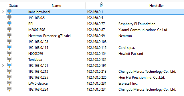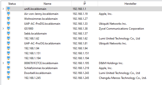 Ich habe gerade mal per "Advanced IP Scanner" am Windows-PC meine ganzen Geräte gescannt. Alle befinden sich im 192.168.0.x IP-Kreis (VF-Station) - und nicht im 192.168.1.x IP-Kreis (UCG-Ultra)... oder spielt das keine Rolle?
